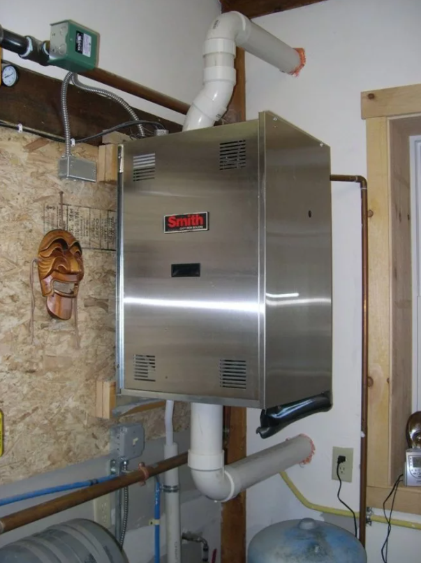 Для среднего или маленького домика, либо квартиры на земле будет достаточно компактного навесного устройства. При размещении оно не займет много места и гармонично впишется в интерьерное решение любого типа.