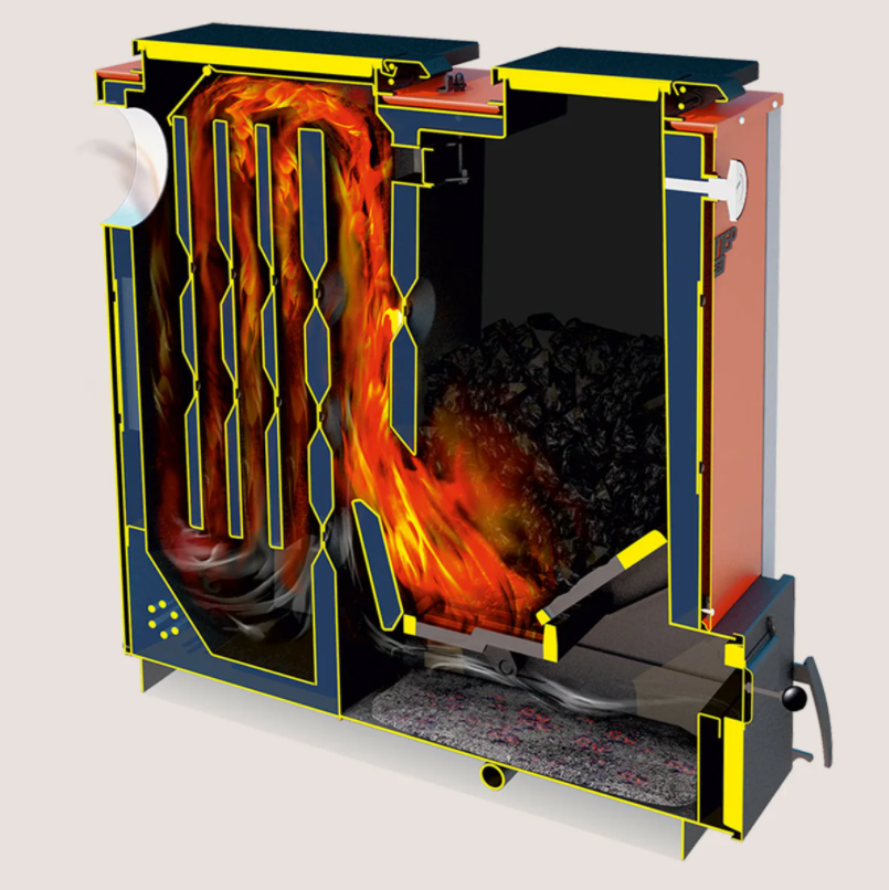 Котел длительного горения на угле — это вариация твердотопливного агрегата, механизм которого в наибольшей степени оптимизирован для применения каменного угля в качестве энергоносителя.