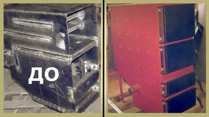 Второй этап– монтаж водяной рубашки из металла 3 мм. Ее толщина у боковых стенок составляет 2 см, поэтому к корпусу топливника следует приварить отрезки стальной полосы, выпустив их на 20 мм. К ним прихватываются стальные листы обшивки.
