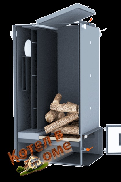 Агрегат Холмова – это теплогенератор, функционирующий на твердом топливе. Устройство имеет вертикально установленные шахты. В топливную камеру можно закладывать уголь, дрова, пеллеты или брикеты. Также не менее эффективно котел работает на сыпучем сырье таком как опилки, щепа. В конструкции допускается использование дров с влажностью более 30%.