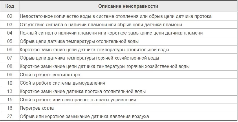 Рекомендуем перед началом эксплуатации ознакомиться не только с конструкцией и техническими характеристиками газового котла, но и с таблицей кодов, заботливо предоставленной производителем.