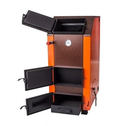 Бюджетный вариант с хорошей мощностью — отличный выбор для небольшого частного дома или дачи. Производитель рекомендует использовать для работы данного котла дрова и древесный уголь. Съемная заслонка обеспечивает легкую чистку теплоносителя.