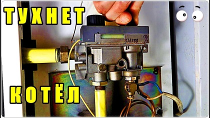 Другой вариант возможен, когда пламя и на пилотной, и на основной горелке выставлено на минимум. В таком случае фитиль загорается, но не достаёт до потока газа от основной горелки, не может её разжечь. Если рискнуть и подождать, котёл может разгореться с задержкой и хлопком, когда газ немного накопится в топочной, либо автоматика всё отключит раньше, во избежание взрыва.