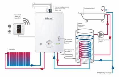 В частных домах можно ограничиться бойлерами косвенного нагрева, накапливающими от 250 до 300 л воды. Точный выбор емкости должен производиться с учетом реальных и прогнозируемых потребностей. При подключении к двухконтурному котлу, оборудованному встроенным насосом, координацию работы клапана по сигналам от термостата берет на себя сама автоматика котла. Это очень важно, потому что двухконтурный нагревательный аппарат, в отличие от одноконтурного, должен подавать горячую жидкость как в систему отопления, так и в водопроводный контур горячего водоснабжения.