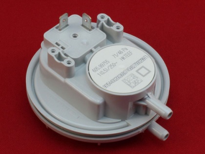 Прессостат газового котла состоит из корпуса с патрубками, микропереключателя на 2 положения, подвижной мембраны со штырем, которая разделяет внутренне пространство корпуса на 2 камеры.