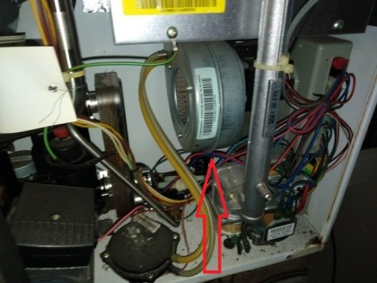 Вентилятор обычно подключают к специальному отсеку, через который устраняются продукты сгорания. Если вентилятор забивается, то котел начинает работать очень шумно. Можно услышать даже свист.