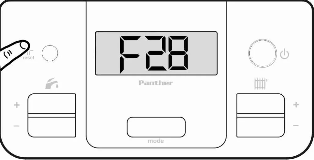 - путем нажатия на клавишу снятия сбоя, которая находится на панели управления (например, F.20 – сигнал от ограничителя температуры, F.28 – отсутствие розжига при 1-ом запуске и др.).
