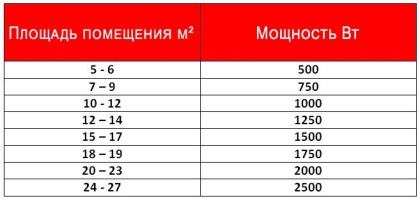 - для районов Северной части страны и Сибири Wуд = 1,5-2 кВт на каждые 10 м²;