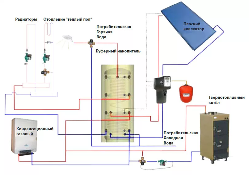Схема подключения теплоаккумулятора к твердотопливному котлу