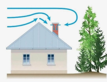 - Нахождением дымохода в зоне ветрового подпора .