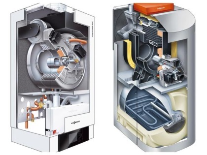• Двухконтурные с проточным нагревателем, горячая вода проходит непосредственно через выделенную секцию водяной рубашки.